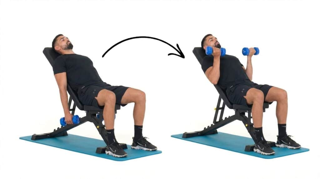 Assis sur un banc incliné, laissez vos bras pendre vers l’arrière. Cette position étire le chef long du biceps à son maximum avant même de commencer la contraction. C’est excellent pour développer le « pic » du biceps.
