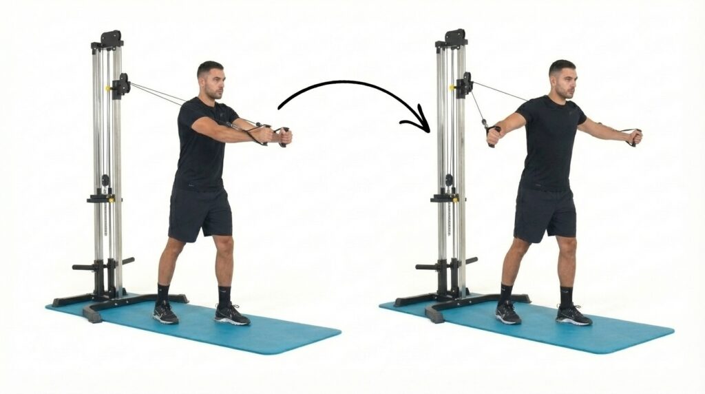 L’exercice le plus sous-estimé à la maison reste l’écarté avec élastiques. Contrairement aux poids libres, les élastiques offrent une tension progressive qui atteint son maximum lors de la contraction de pic.