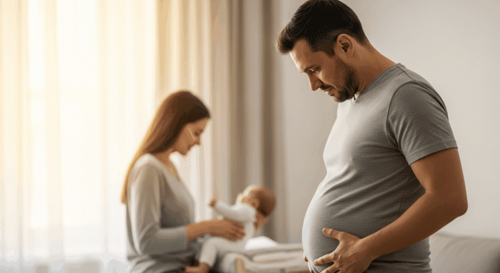 De nombreux futurs pères se sentent « mis de côté » ou moins impliqués que la mère, ce qui peut accroître leur sensibilité émotionnelle et générer un besoin inconscient de « participer » physiquement à la grossesse.