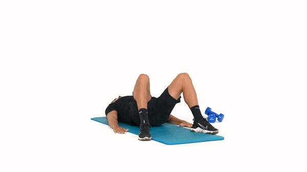 Allongez-vous au sol et placez vos pieds à plat sur le sol, écartés à la largeur des épaules, genoux pliés à environ 90 degrés. Votre dos est en appui contre le sol sur vos omoplates. Vos bras sont le long du corps avec les paumes des mains face au sol.