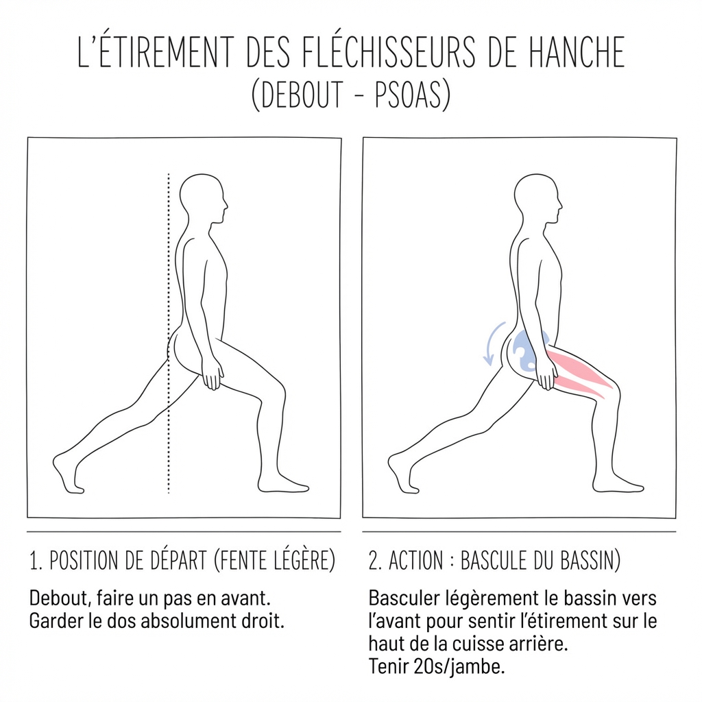 4. L’étirement des fléchisseurs de hanche (Debout)