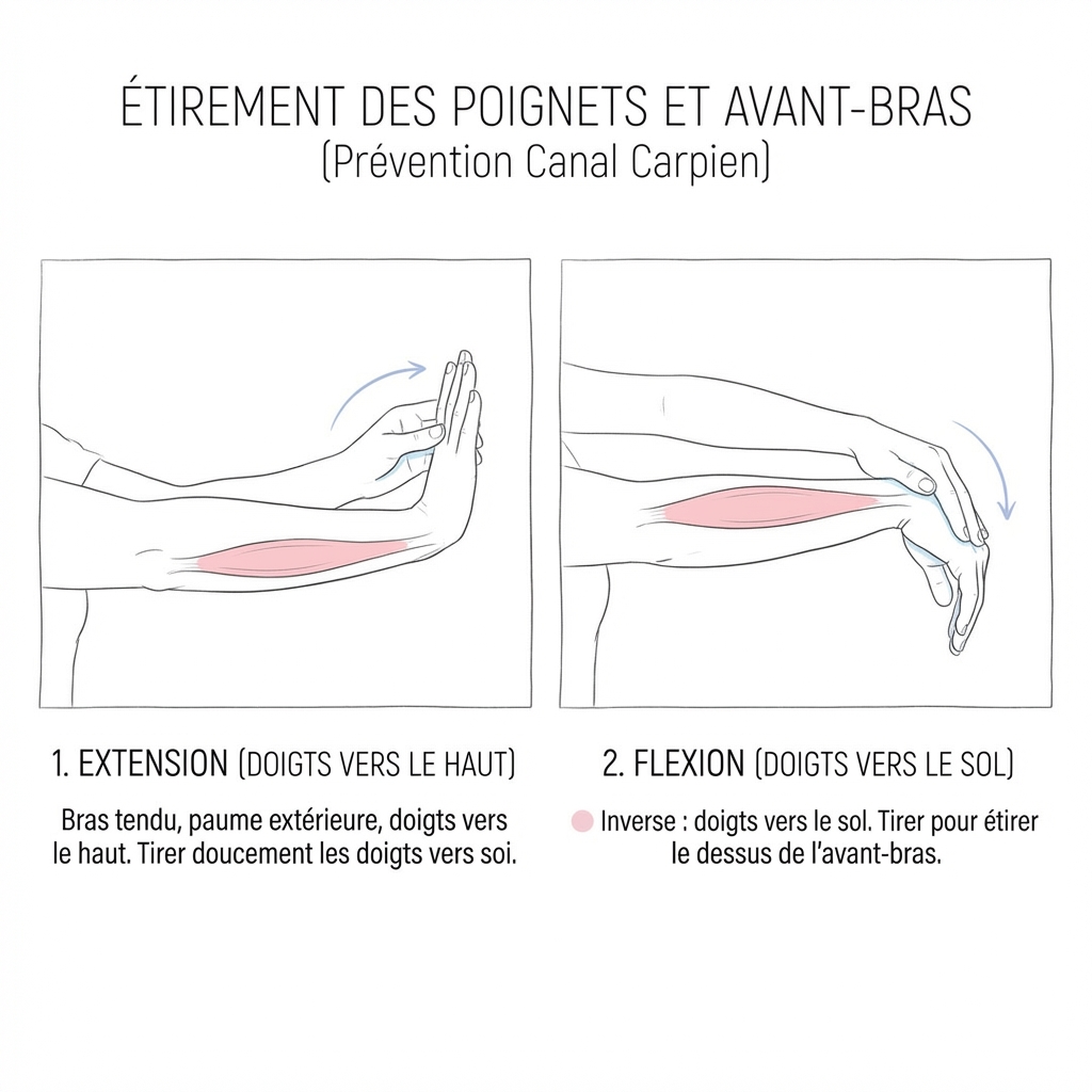 Essentiel pour prévenir le syndrome du canal carpien qui peut irradier jusqu’aux épaules.