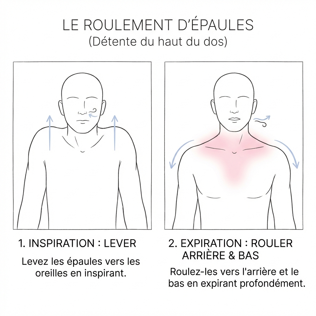 Ce geste replace les omoplates et détend instantanément le haut du dos.