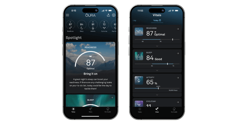 Les algorithmes de l’Oura Ring utilisent les données des capteurs (mouvement, fréquence cardiaque, température) pour estimer les différentes phases de sommeil.