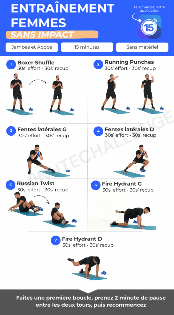 🕒 Durée totale : environ 15 minutes (avec 1 minute de repos entre les tours)