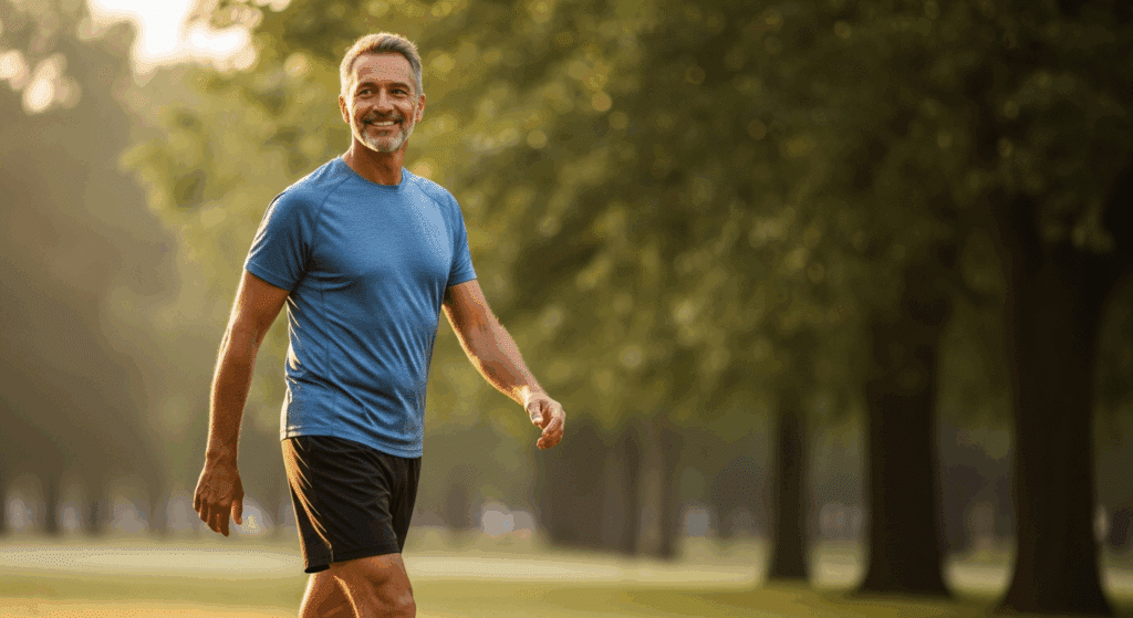 - Marche rapide : C’est l’un des exercices les plus accessibles et efficaces. Visez 30 à 45 minutes, 3 à 5 fois par semaine. Une marche suffisamment rapide pour vous essouffler légèrement mais vous permettre de parler.
