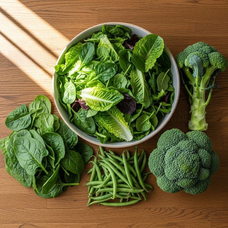 Épinards, salade, brocolis, haricots verts. Ils sont riches en fibres, vitamines et minéraux, et très peu caloriques.