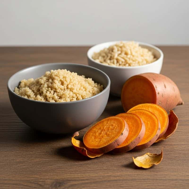 Quinoa, patate douce, riz complet. Ils apportent de l’énergie sans provoquer de pic de glycémie.