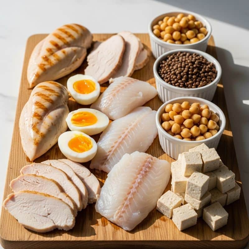 Poulet (sans peau), dinde, poisson blanc (cabillaud, sole, colin), œufs, tofu, légumineuses (lentilles, pois chiches). Les protéines sont essentielles pour la satiété et la préservation de la masse musculaire pendant la perte de poids.