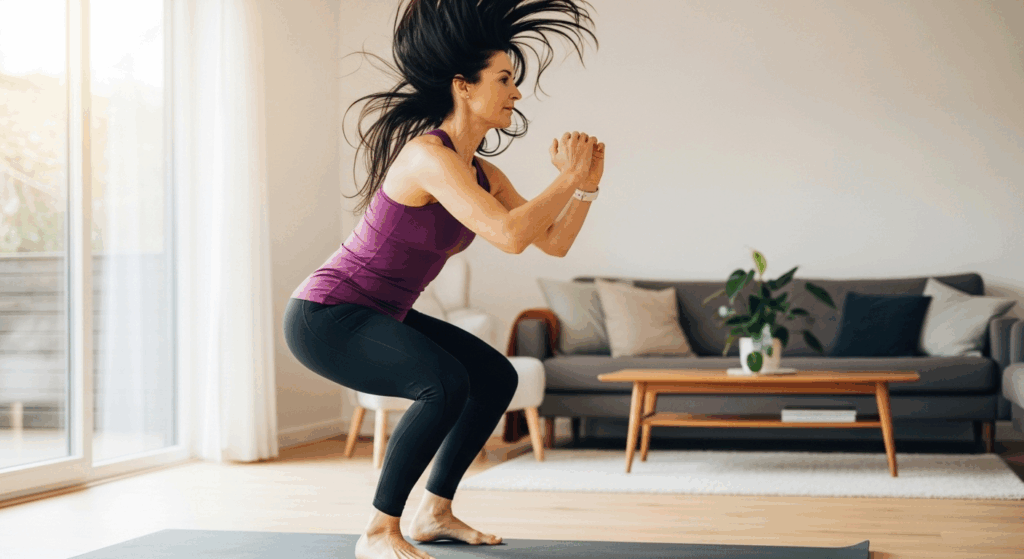 Squats : Travaille fessiers, cuisses. Variez avec des squats sautés pour plus d’intensité.