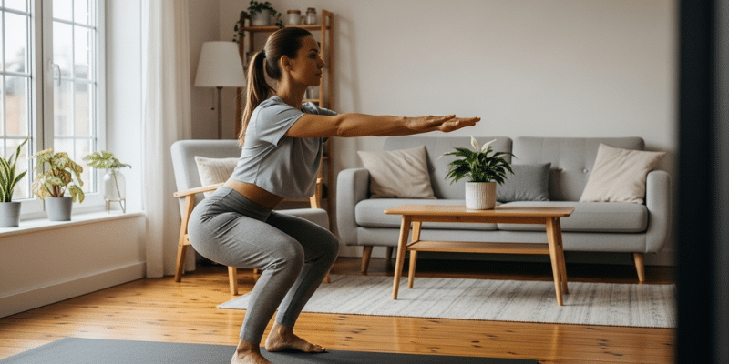 - Choix des exercices : Remplacez les exercices à fort impact (burpees, squats sautés) par des options à faible impact (squats classiques, fentes marchées) si vous avez des douleurs articulaires ou si vous débutez. Pour des options sans impact, découvrez nos exercices sans impact pour la perte de poids.