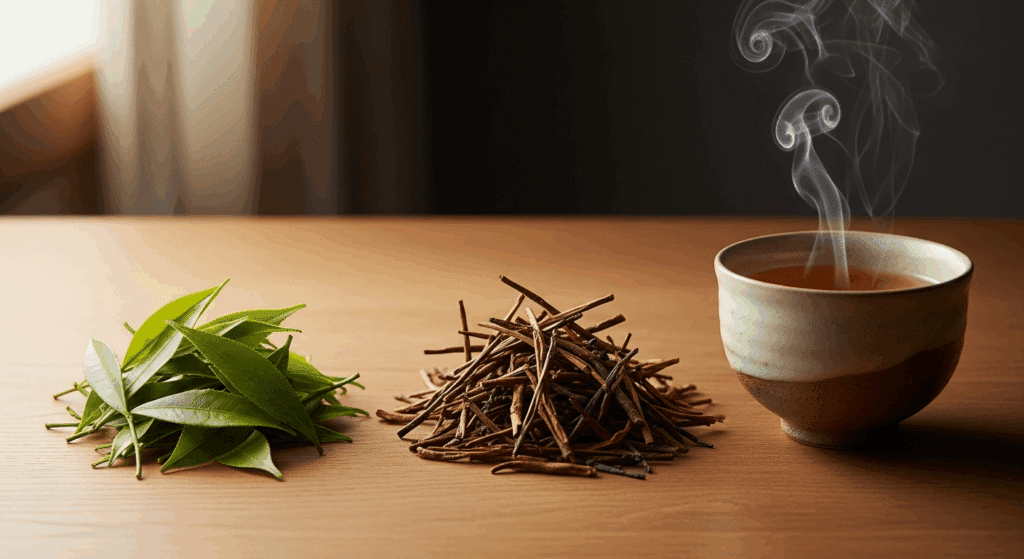 Ces thés sont fabriqués à partir de feuilles plus matures. Le Hojicha est torréfié, ce qui lui donne une saveur fumée et réduit sa teneur en caféine. Ils sont moins riches en EGCG que le matcha ou le sencha, mais restent de bonnes options pour ceux qui sont sensibles à la caféine ou préfèrent une saveur plus douce.