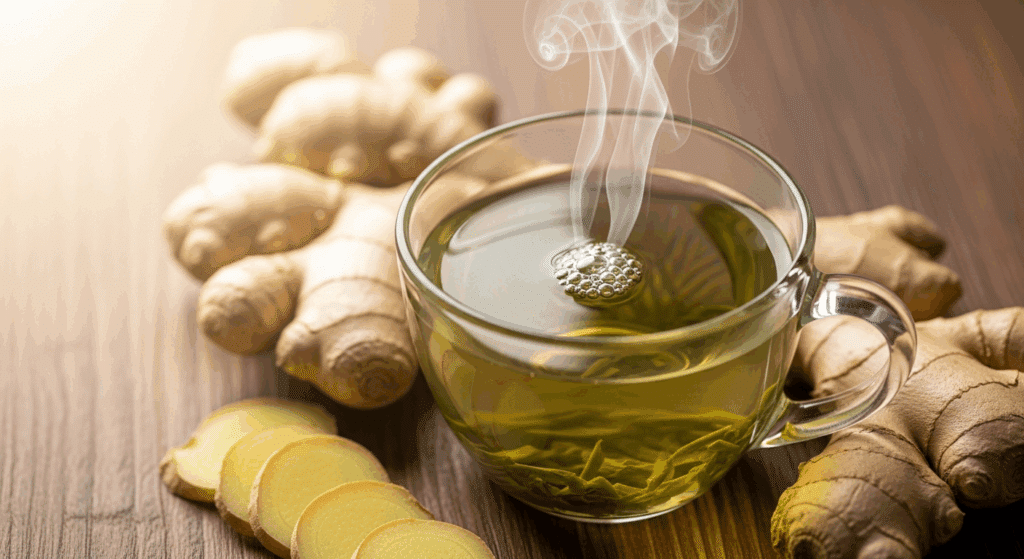 Le gingembre est connu pour ses propriétés thermogéniques et digestives. Combiné au thé vert, il peut stimuler davantage le métabolisme et aider à la digestion, réduisant les ballonnements.