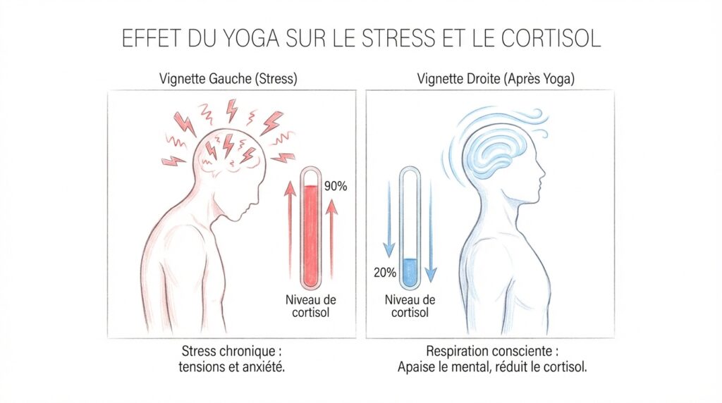 En apprenant à respirer profondément et à focaliser votre attention sur le moment présent, vous abaissez votre taux de cortisol (l’hormone du stress). Le résultat ? Un esprit plus clair, une anxiété réduite et, très souvent, un sommeil de meilleure qualité, plus profond et plus réparateur.